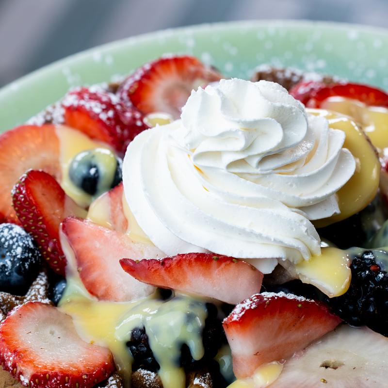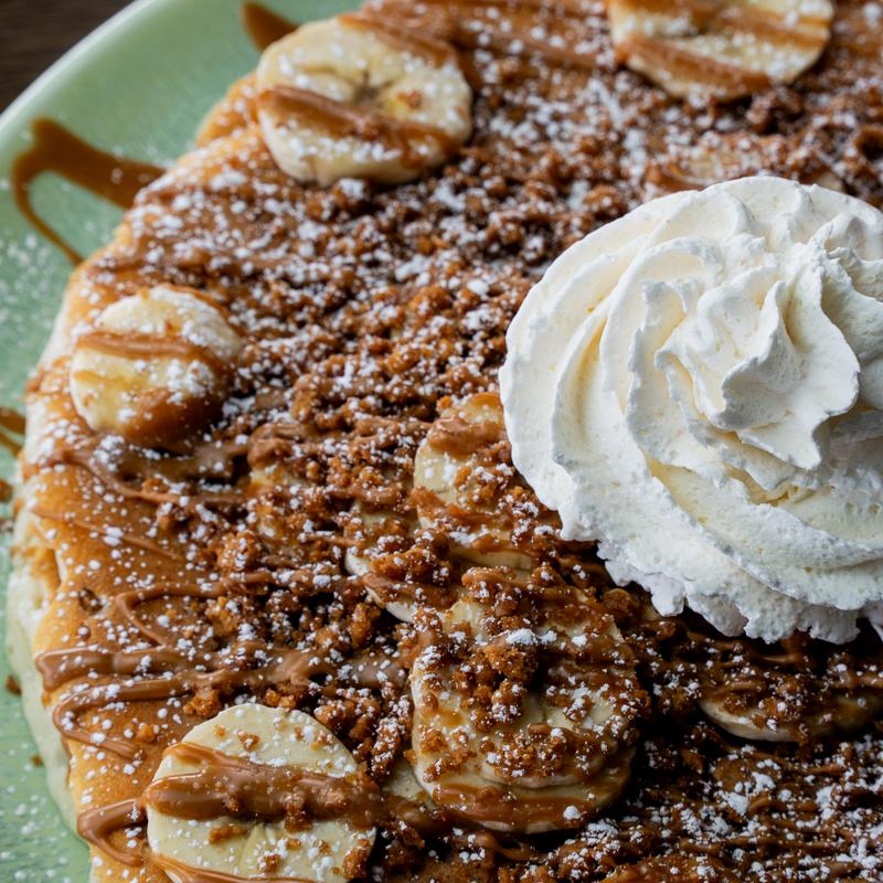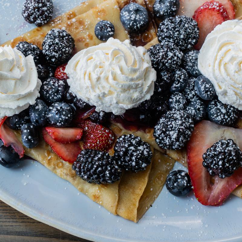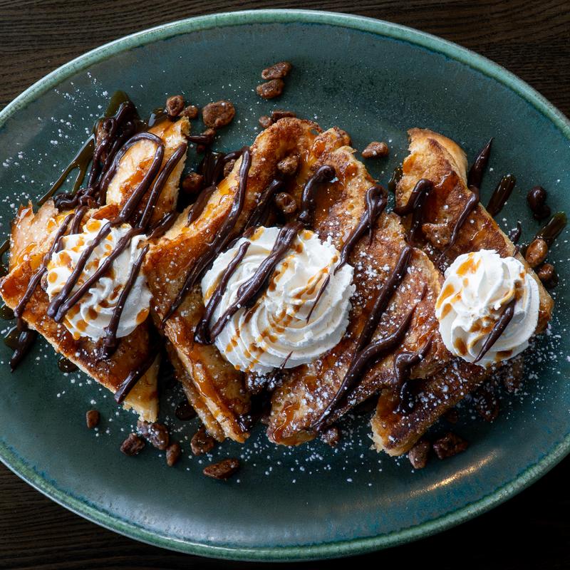 Topped with powdered sugar and homemade whipped cream and served with maple syrup | Substitute Organic Barrel-Aged Bourbon Maple Syrup +$3.50