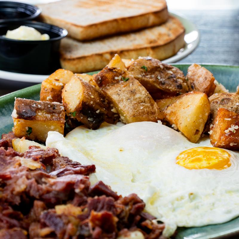 Side of Meat: Ham Off the Bone $6.00 | Crispy Bacon $5.00 | Pork Sausage or Chicken Sausage $4.50 | Chicken Chorizo $4.00 | Corned Beef Hash $6.00 | Grilled or Crispy Chicken $6.00 | Smoked Salmon $7.00 | Beef Birria $6.00